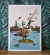 Original hand cut collage on canvas board.